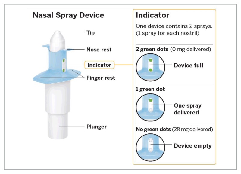 The treatment regimen with Spravato is 2 treatments a week for four weeks, followed by 1 treatment a week for four weeks.